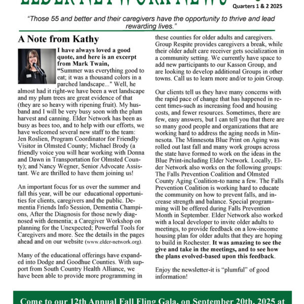 Elder Network services Olmsted, Wabasha and Winona Counties.