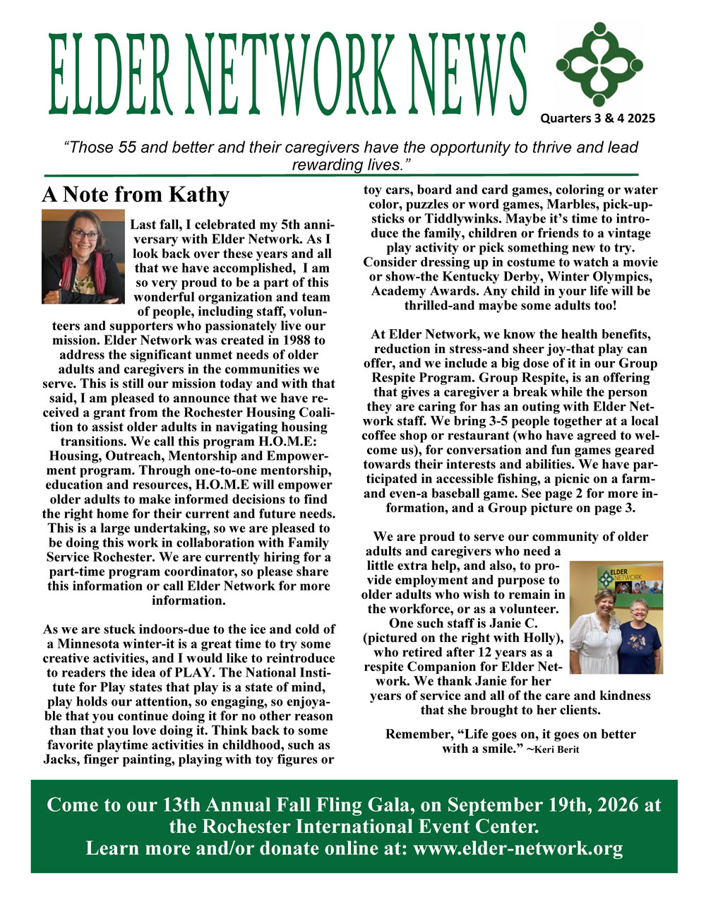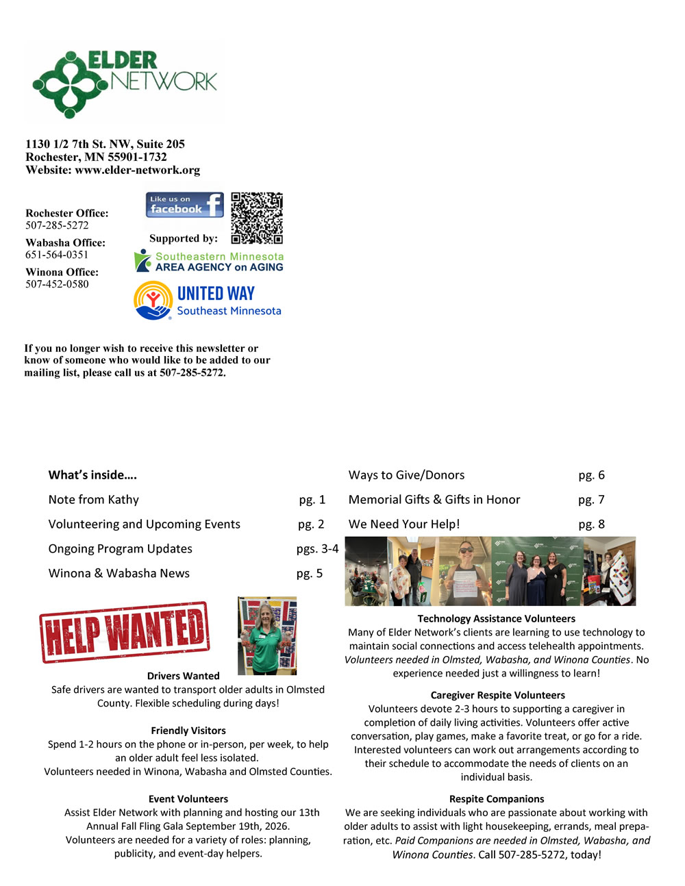Elder Network is an Equal Opportunity/Affirmative Action employer. Elder Network follows the principles of non-discrimination in employment complying with all Federal, State, and local laws concerning Civil Rights, non-discrimination on the basis of race, color, religion, sexual orientation, gender identity, national origin, disability, and age. Thank you for your support!